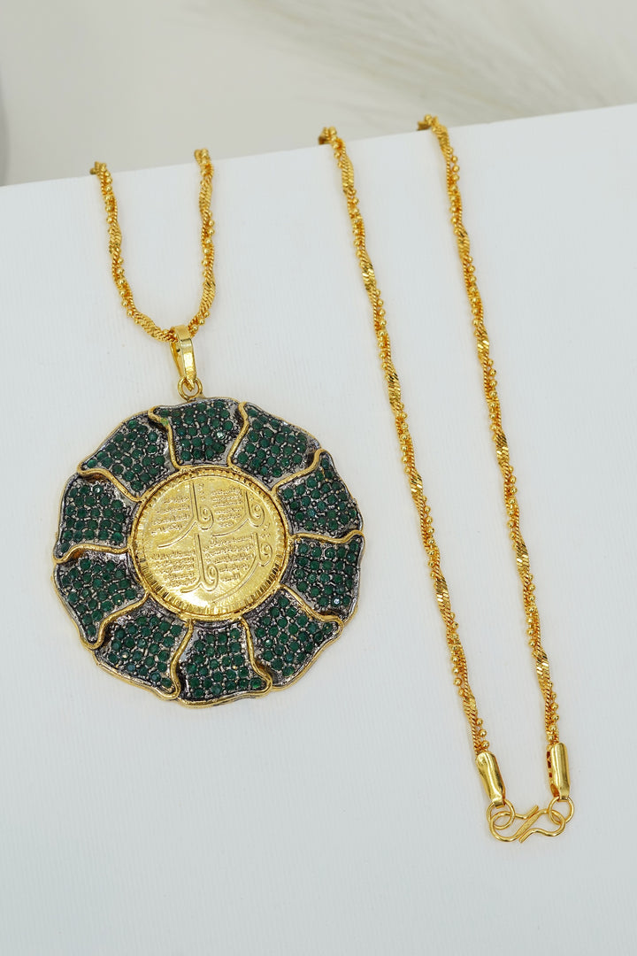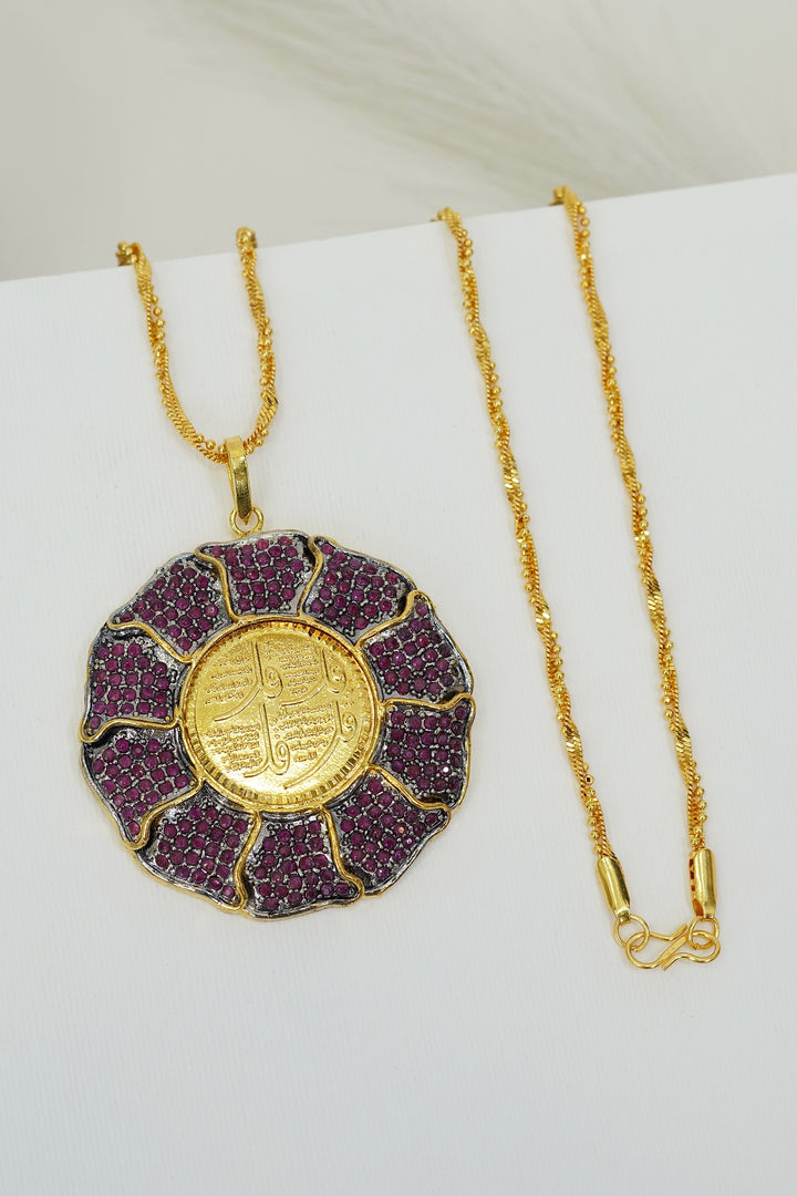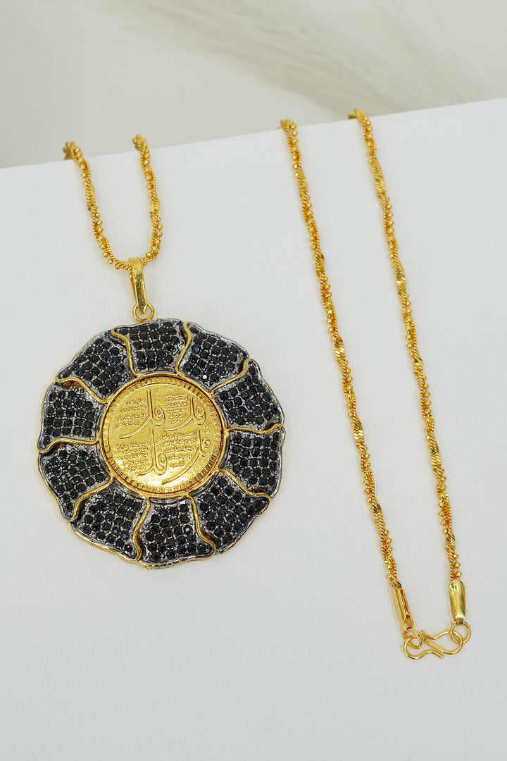 Gold Plated 4 Qul Calligraphy Zirconia Pendant