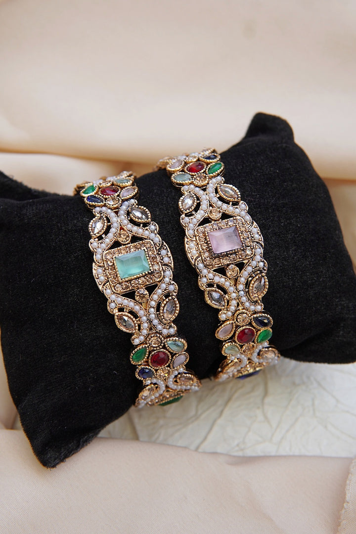 Enhance your elegance with the Classic Gemstone Kara Pair, beautifully crafted with vibrant gemstones in a timeless traditional design. These karas make a perfect accessory for weddings, festive celebrations, and adding a graceful touch to your everyday style. Experience the blend of classic sophistication and vibrant charm with every wear.