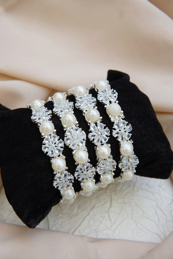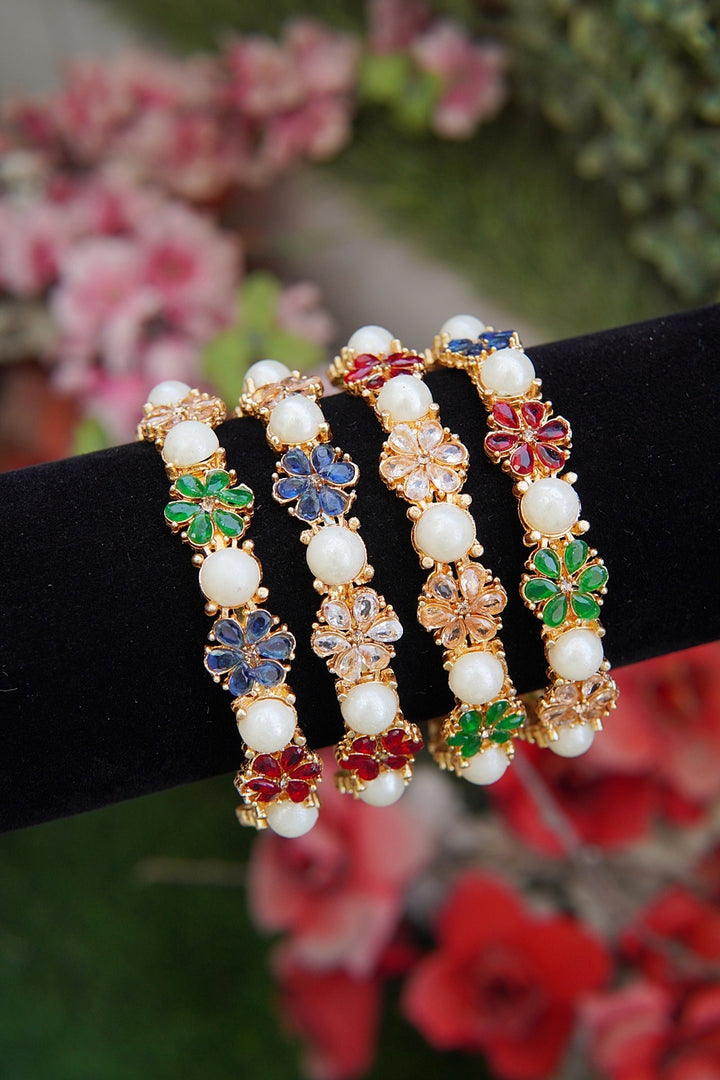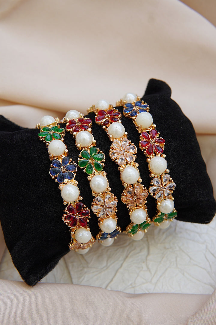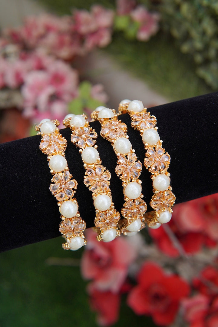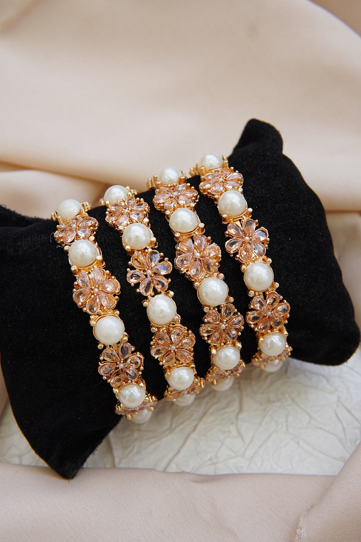 Floral Pearl 4 Pcs Bangles Set