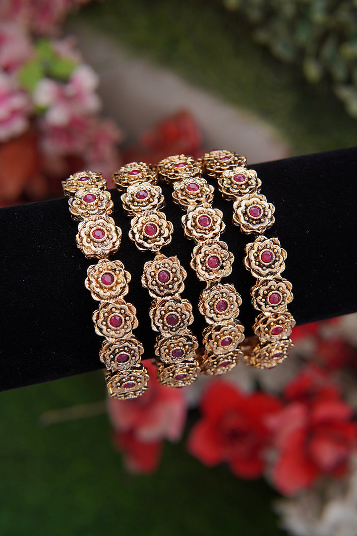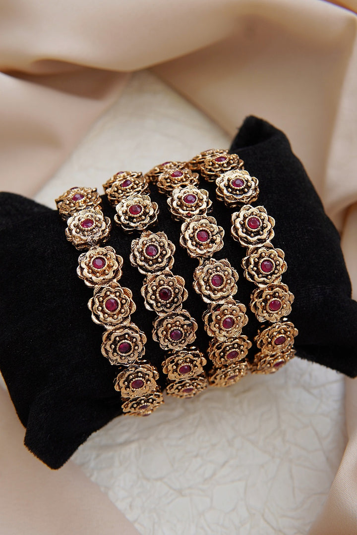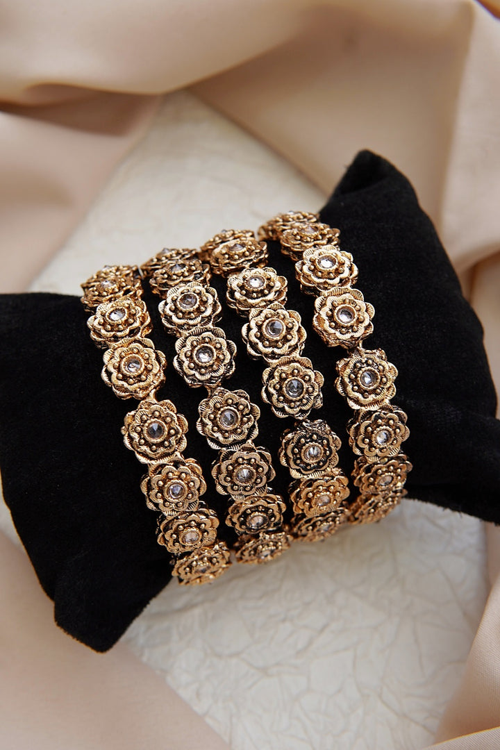 This set of 4 kangans features high-quality copper gold plating with fine zircons. Enjoy wearing this exquisite set and take your ethnic look to the next level. Durable and stylish, this set is ready to be your companion for all occasions.