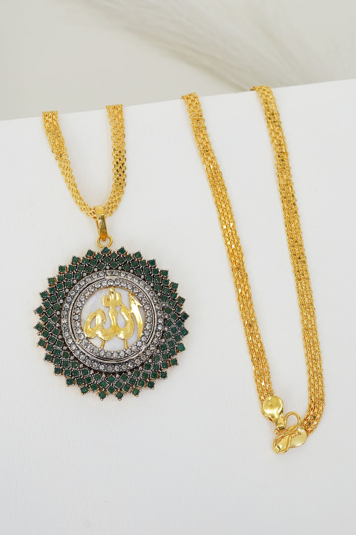 Cubic Zircon Gold Plated Calligraphy Pendant