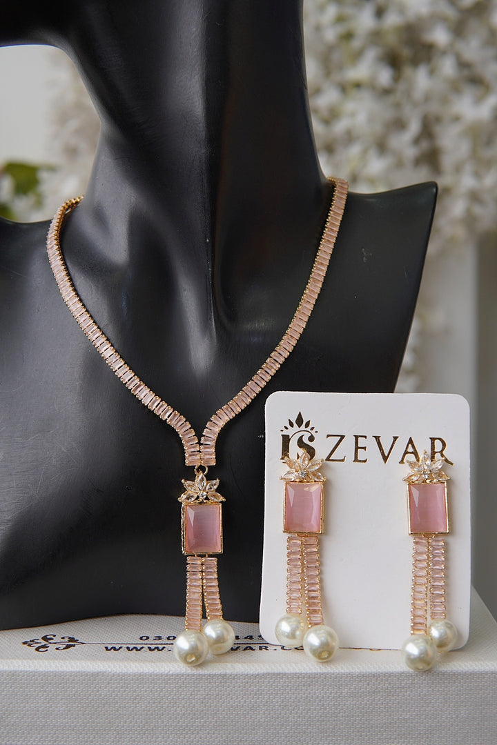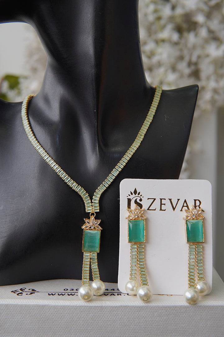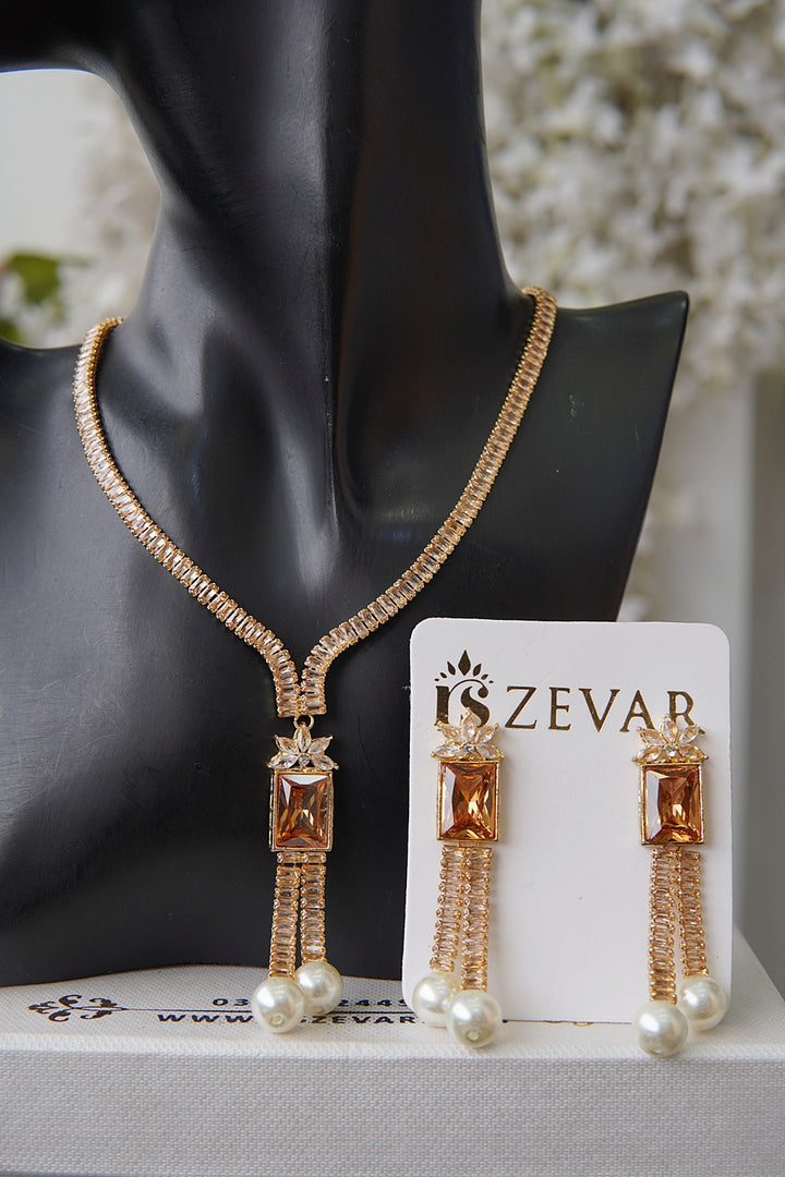 This exquisite necklace set features a perfect blend of gold and silver plating, creating a stunning shine. Crafted with high-quality AAA grade cubic zirconia and semi-precious gemstones, this set exudes luxury and elegance. Elevate any outfit with this timeless and sophisticated piece.