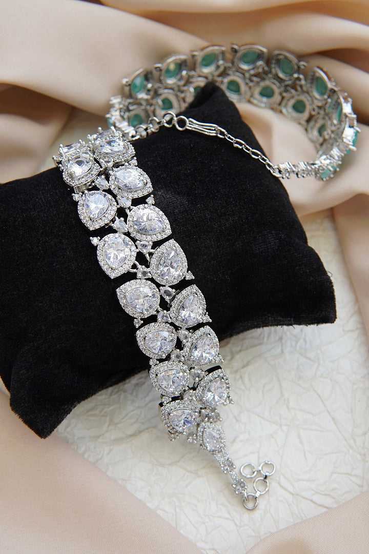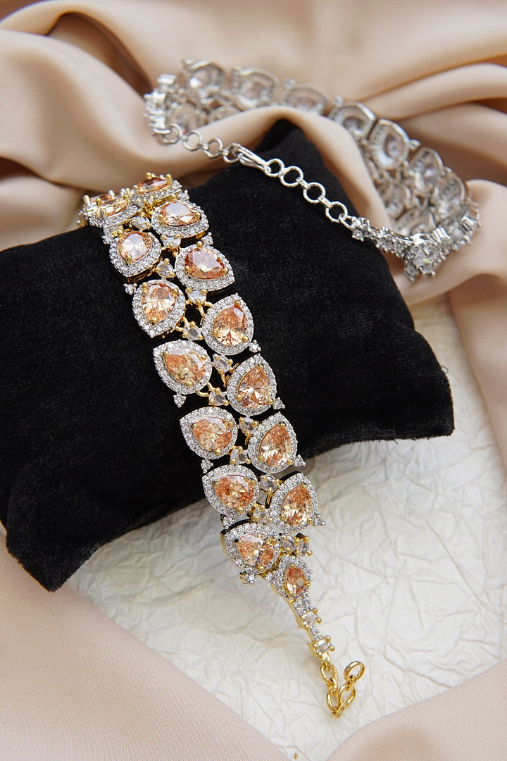 Crafted with heavy quality pure zircons, the Cubic Zirconia Adjustable Bracelet exudes elegance and luxury. The alluring two-tone and silver platings add a touch of sophistication to this piece. Enjoy the perfect fit with its free adjustable size.