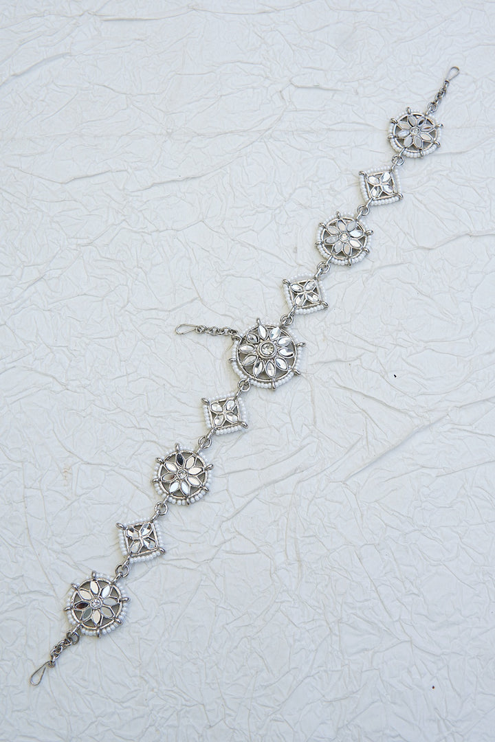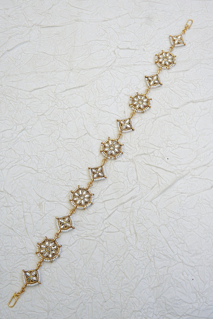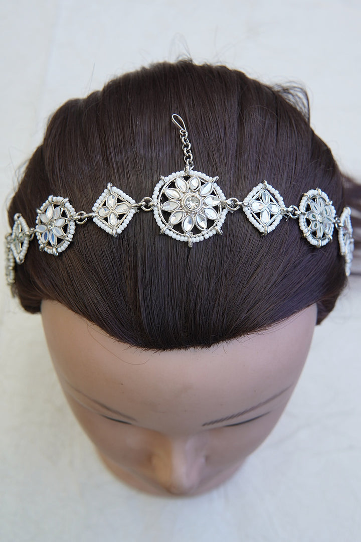 Experience a royal touch with our Cut Kundan Design Sheesh Patti. This trendy head piece for women is the perfect addition to your jewelry collection. Made with high-quality materials, it adds a touch of elegance and sophistication to your look, giving you a princess-like appearance. Upgrade your style with our stylish and fashionable sheesh patti.