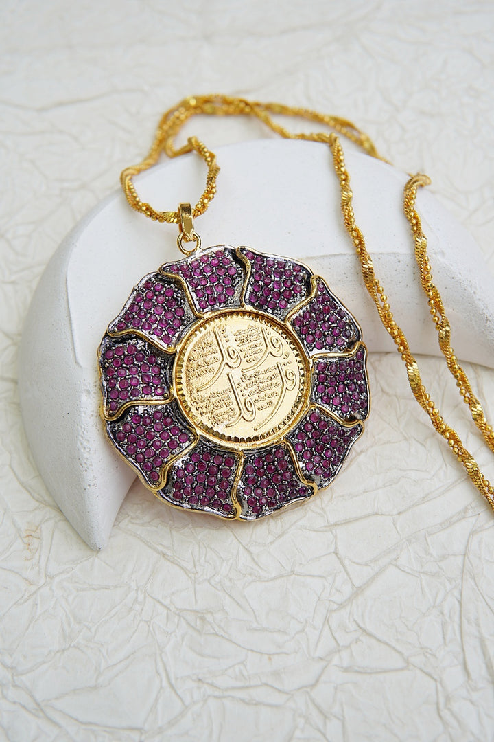 Gold Plated 4 Qul Calligraphy Zirconia Pendant