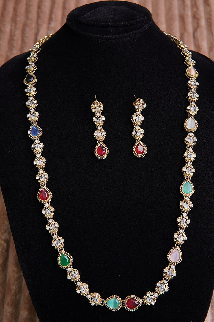 Multi Semi-Precious Gemstones Mala Earrings Set