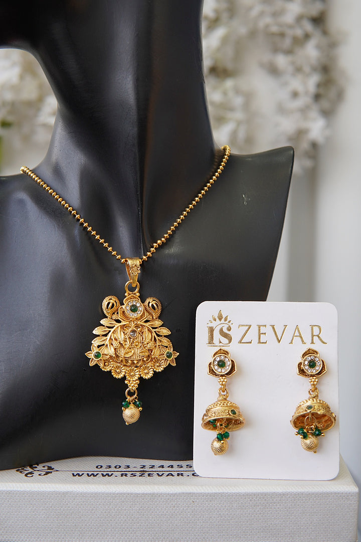Expertly crafted with a brass base and finished with a luxurious matt gold plating, the Rajwad Copper Based Locket Set is both elegant and durable. Using reverse ad stones, this set is the perfect complement to any outfit, adding a touch of glamour and sophistication.