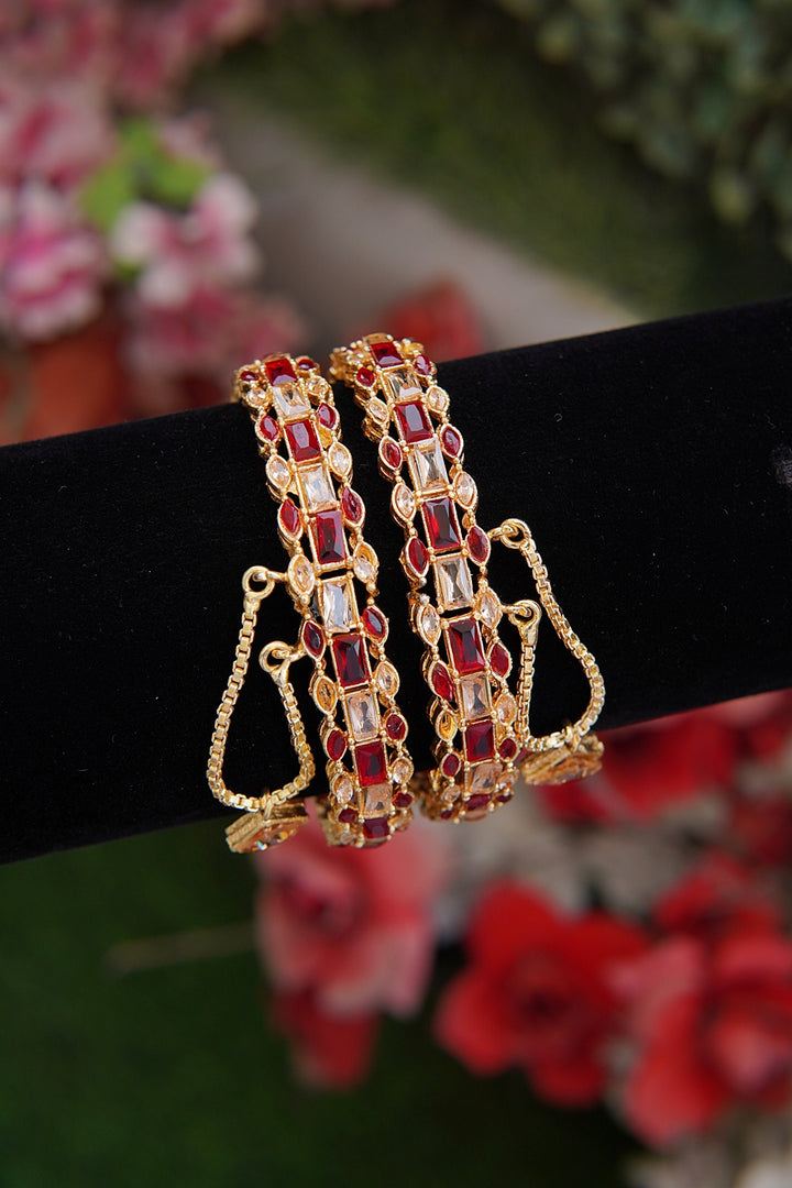 Elevate your look with this exquisite pair of Tapper Cut Zircons Openable Bangles. Crafted from silver steel with golden plating, these bangles feature high quality cut zircons and are available in standard openable sizes making them a gorgeous addition to your jewelry collection.