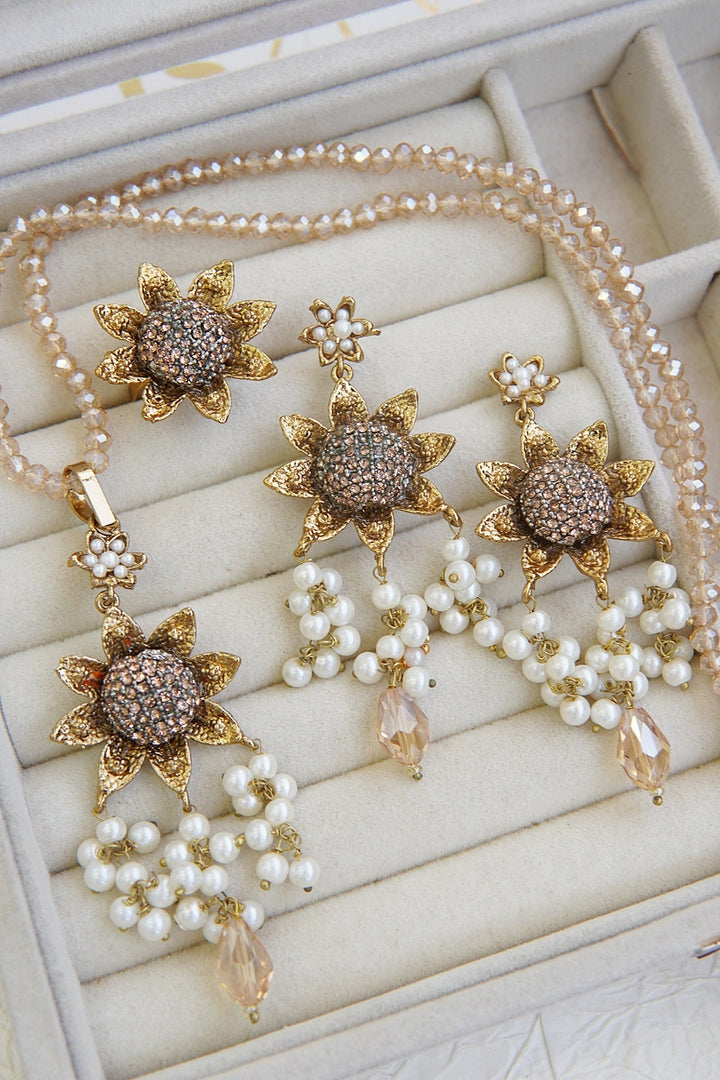This Turkish Antique Locket Combo Set features a beautifully handmade combination of earrings, locket, and an adjustable ring. With its antique copper based plating and Turkish-inspired colors, this set is sure to add a touch of elegance to any outfit. Perfect for those looking for a unique and stylish accessory.