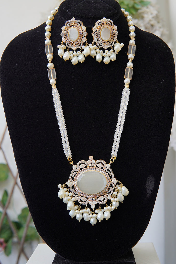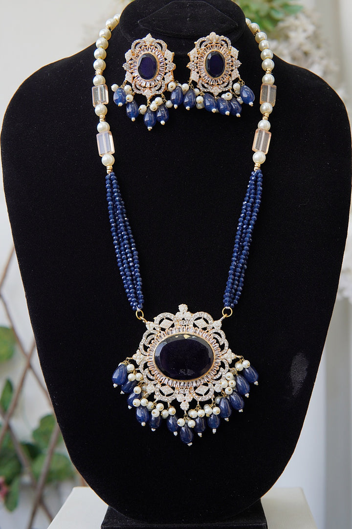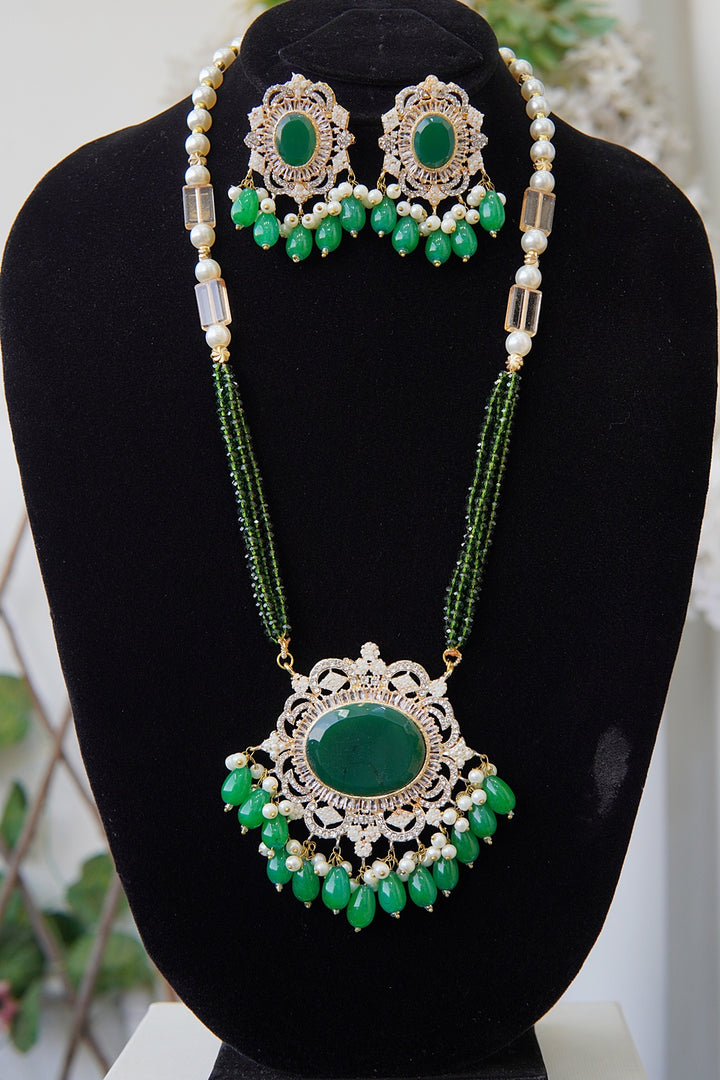 Expertly crafted, this Turkish Big Stone Long Rani Haar Set boasts golden and rhodium plating, adding elegance and durability. With semi-gem stones and zircons attached, this set adds a touch of sparkle to any outfit. The 24 inch long mala and beautiful studs provide a perfect and versatile addition to your collection.