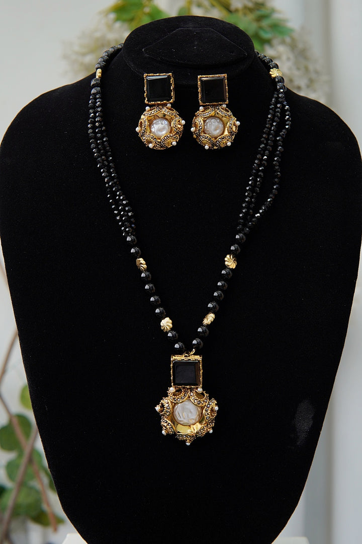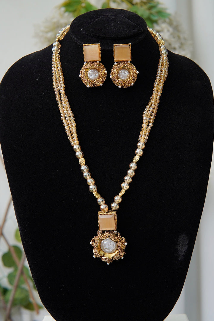 Elevate your style with our Turkish Long Mala Pendant Set, featuring high-quality mother pearl and semi-gems attached to a copper gold material. Enjoy the timeless elegance of Turkish stones, perfect for adding a touch of sophistication to any outfit.