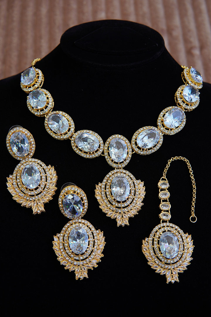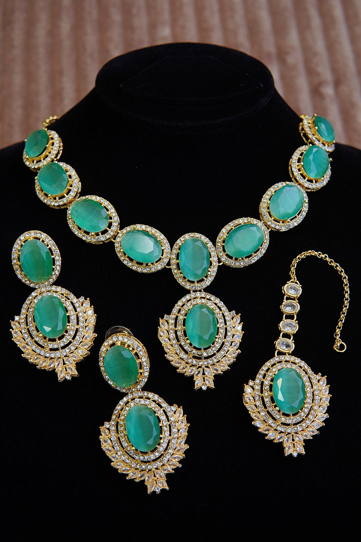 This Zircone Glowing Necklace Set is perfect for parties, featuring a larger stone design made with high-quality plating and materials. Elevate your look with this stunning necklace, sure to catch the eye of any fashion expert. Experience luxurious and glowing style with this exquisite set.