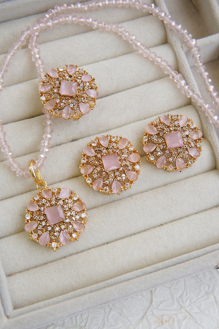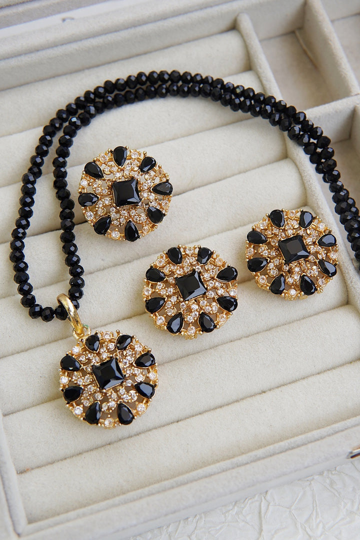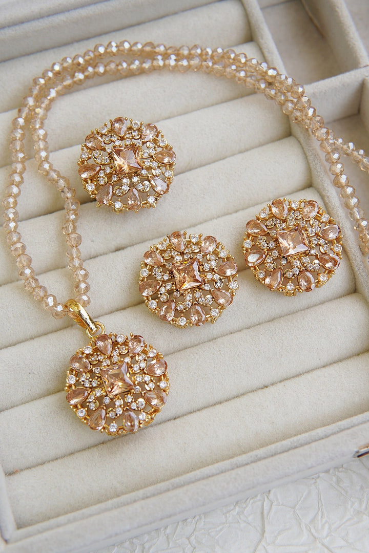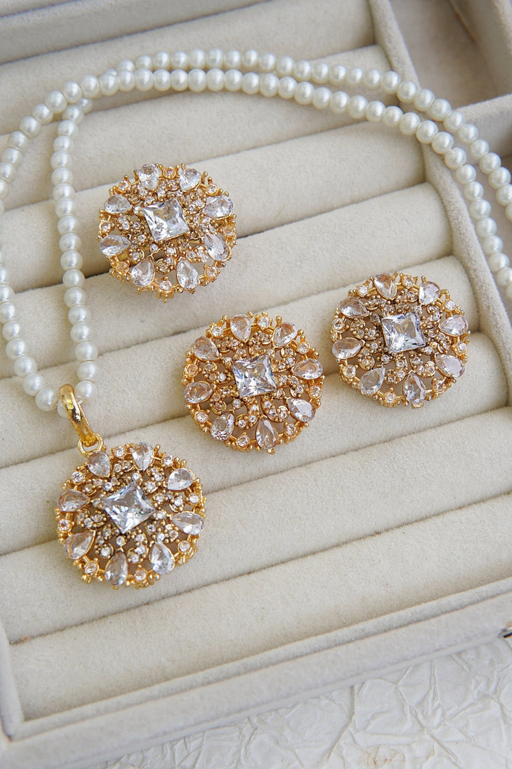 Experience elegance and durability with our Zirconia Stones Combo Set. The golden plating adds a touch of luxury, while the copper casting material ensures a lasting shine. This beautiful set includes a locked necklace and adjustable ring, perfect for any occasion. Complete your look with high-quality finishing and be the envy of all.