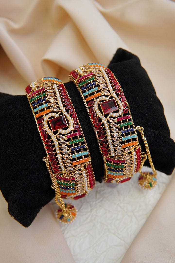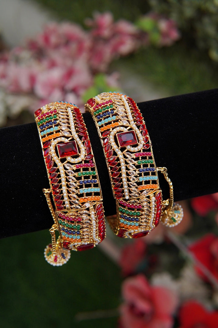 Expertly crafted with antique gold and silver plating, the Zirconium Gemstones Kara Pair exudes elegance. Made with semi-gemstones on high quality copper material, these earrings come as a pair, making them perfect for any occasion. Elevate your style with this stunning accessory.