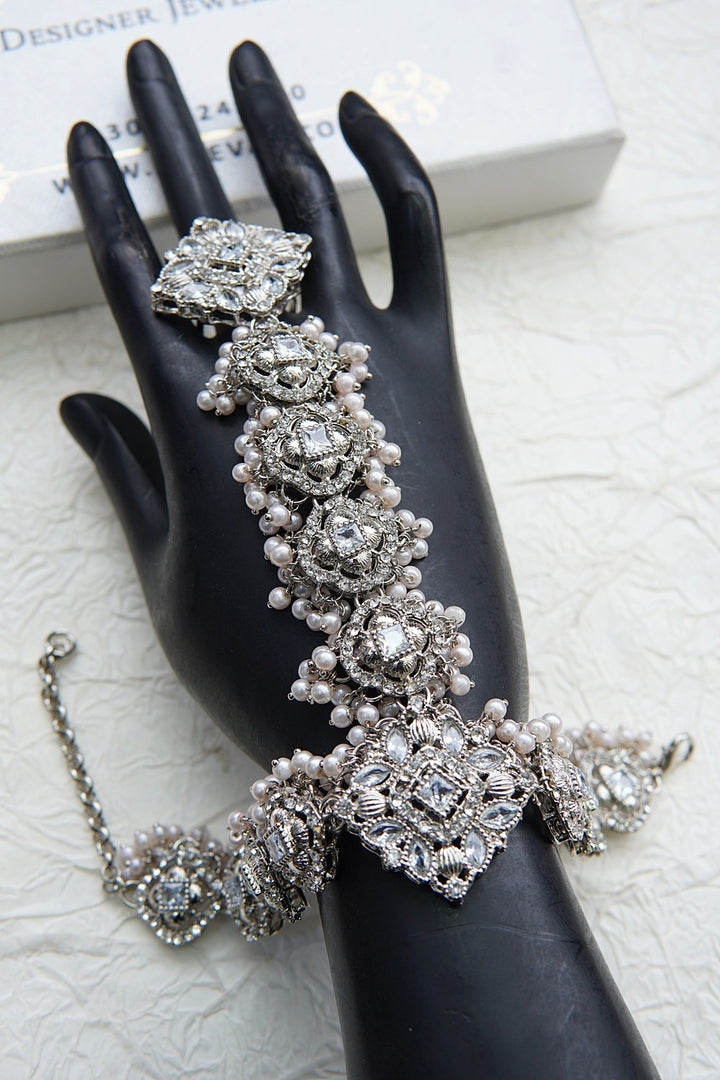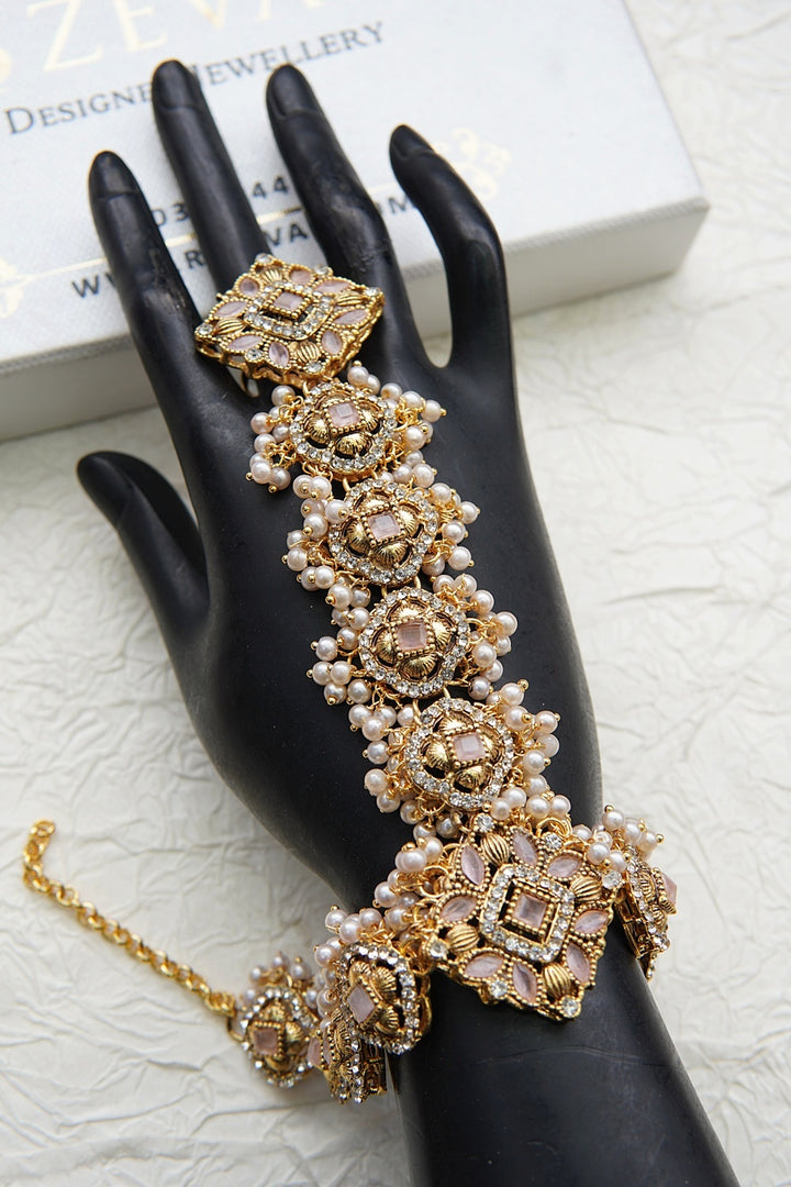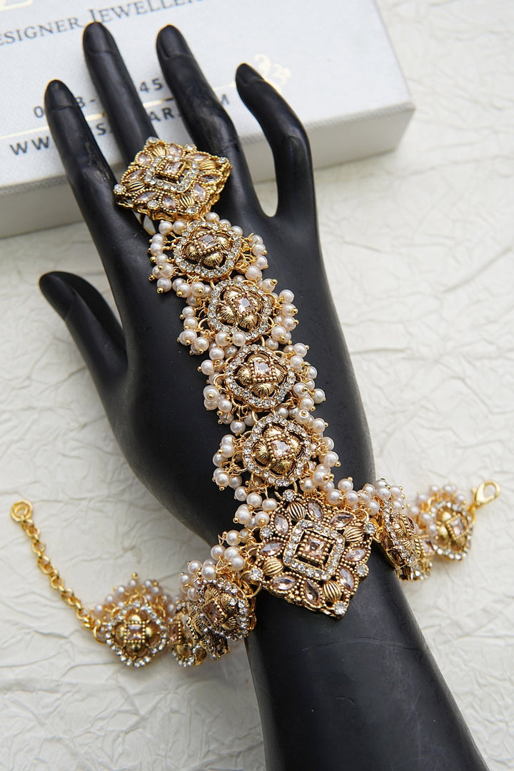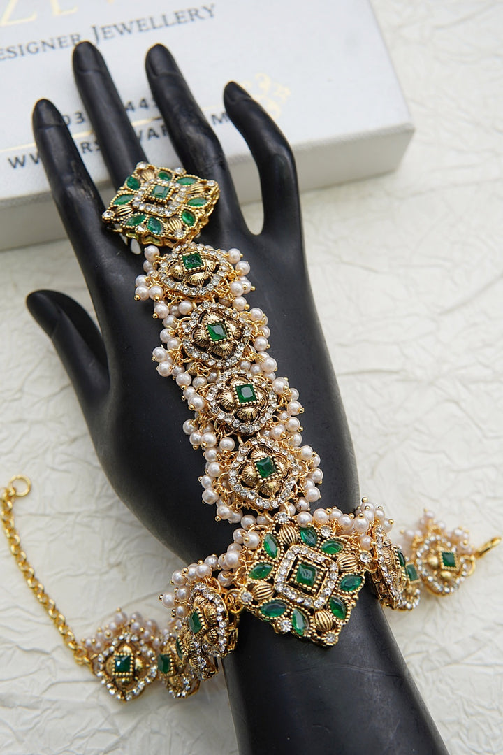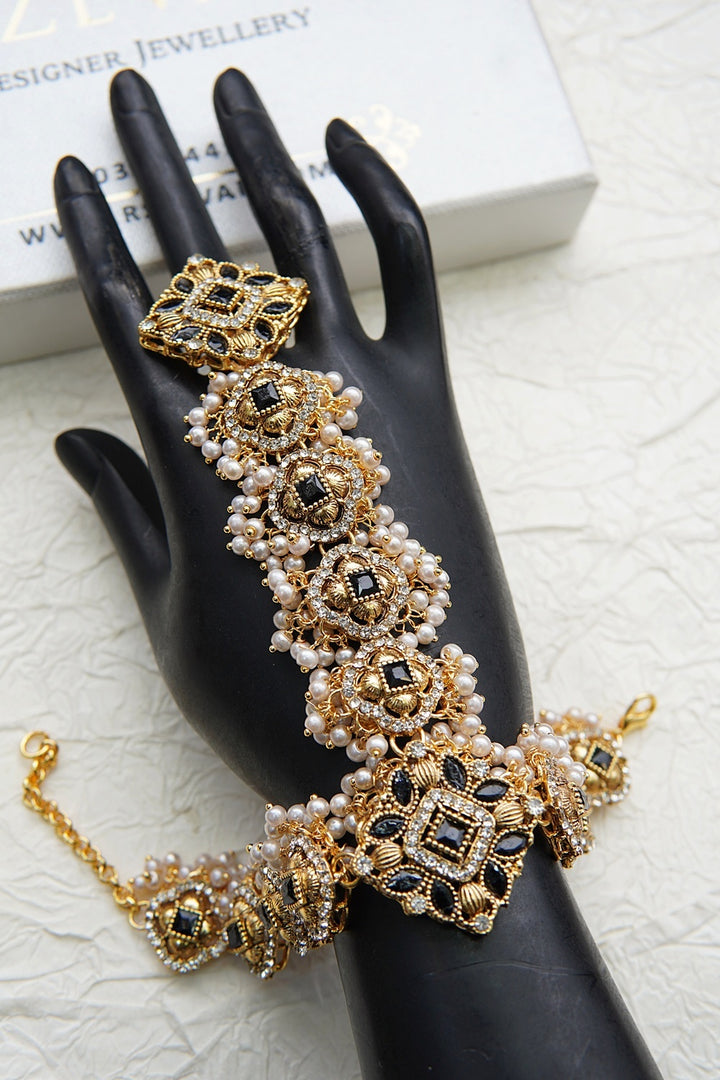 Introducing our stunning Gemstones & Pearls Anja Bracelet, featuring beautiful handmade anjas and high quality materials. Each bracelet comes with handmade latkans attached and is free adjustable for the perfect fit. Elevate your style with this unique and elegant accessory.